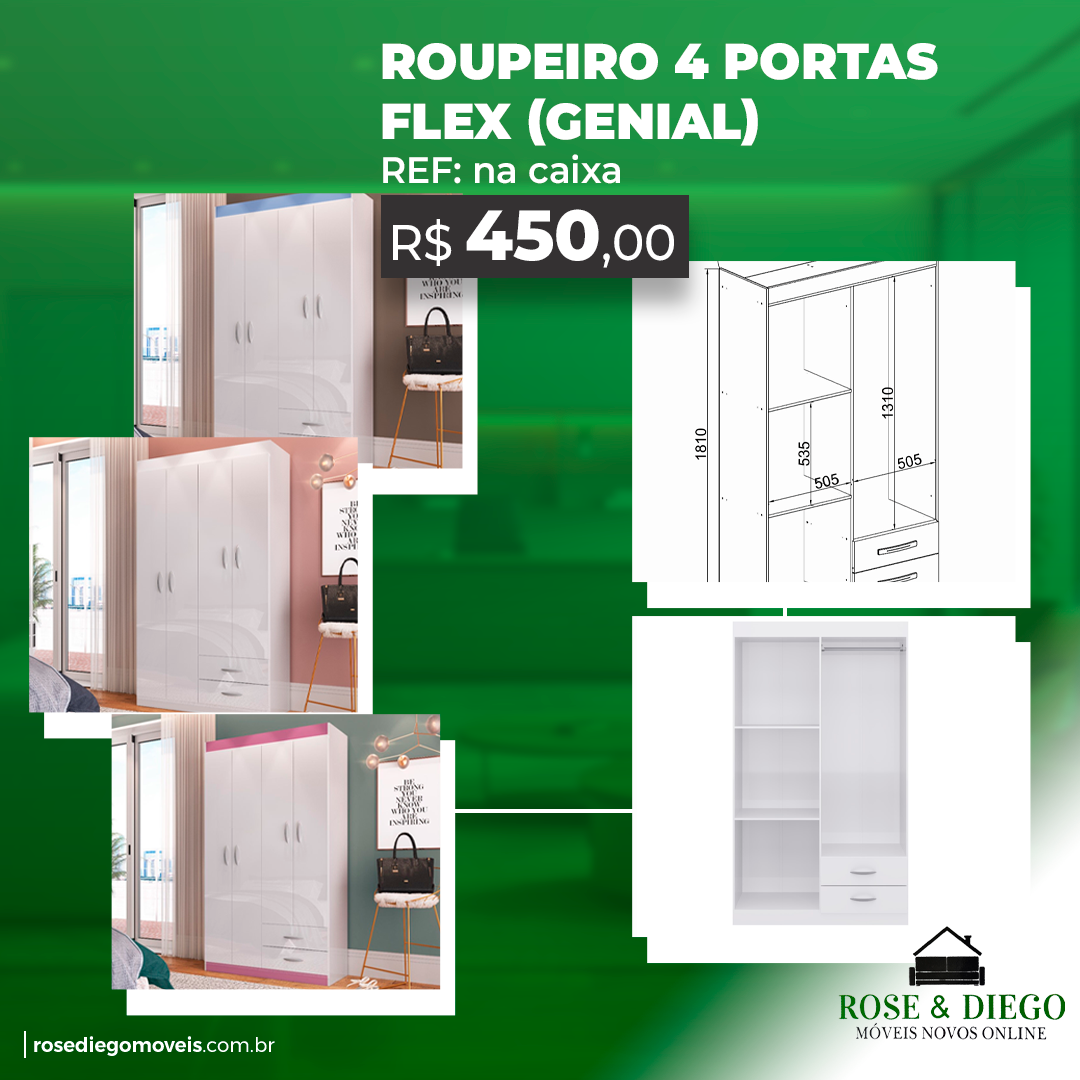 Produto anterior Próximo produto Roupeiro 4 Portas Flex Genial R$450,00 Roupeiro 4 Portas Flex Genial quantity Add to cart Category: Dormitório Reviews (0) Reviews There are no reviews yet. Be the first to review “Roupeiro 4 Portas Flex Genial” Cancelar respostaO seu endereço de e-mail não será publicado. Campos obrigatórios são marcados com *Your rating * Rate… Perfect Good Average Not that bad Very poor Your review *Name * Email * Salvar meus dados neste navegador para a próxima vez que eu comentar. Related products Visualização rápida Visualização rápida Dormitório, SalaMesa Slim R$149,99 COMPRAR PELO WHATSAPP Visualização rápida Sale! Visualização rápida DormitórioRoupeiro FLEX R$399,99 Original price was: R$399,99.R$349,99Current price is: R$349,99. COMPRAR PELO WHATSAPP Visualização rápida Sale! Visualização rápida DormitórioCômoda 131 R$289,99 Original price was: R$289,99.R$239,99Current price is: R$239,99. COMPRAR PELO WHATSAPP